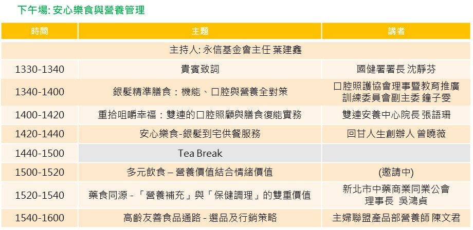 參加對象 │ 食品廠商、零售與藥局醫材通路、長照服務業、醫療院所、餐飲業者以及有意投入銀髮膳食相關業者 ,歡迎踴躍報名參加