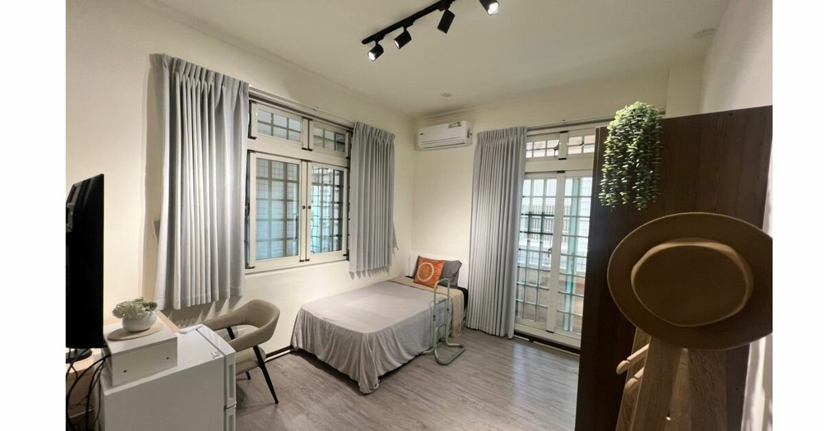 鄰近元智大學、日月光中壢廠,靜謐的巷弄內,這棟屋齡20年的電梯公寓,正是國內首創以包租代管模式改造老屋的熟齡友善租屋環境—「沐星宅」。鎖定「50+」熟齡族群,一卡皮箱就能入住,還能協助出租原屋。創辦人林聖倫說,「我們不只是裝修一個空間, 而是在打造一種:熟齡也能住得有朋友、有節奏、有溫度的新生活方式」。