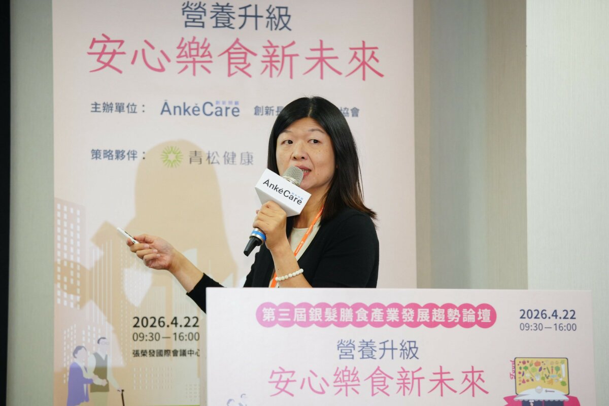 台灣主婦聯盟生活消費合作社產品部營養師陳文君則從通路角度指出,未來競爭不只在產品,而在價值。陳文君表示,主婦聯盟以食安、環保與共好經濟為核心,透過嚴格把關與資訊透明建立信任。隨著社員逐漸高齡化,51至70歲族群已占近六成,團隊也透過問卷與使用經驗回饋,發展出常溫粥品、濃縮乳製品與冷藏餐盒等樂齡產品,兼顧營養密度與食用便利性。