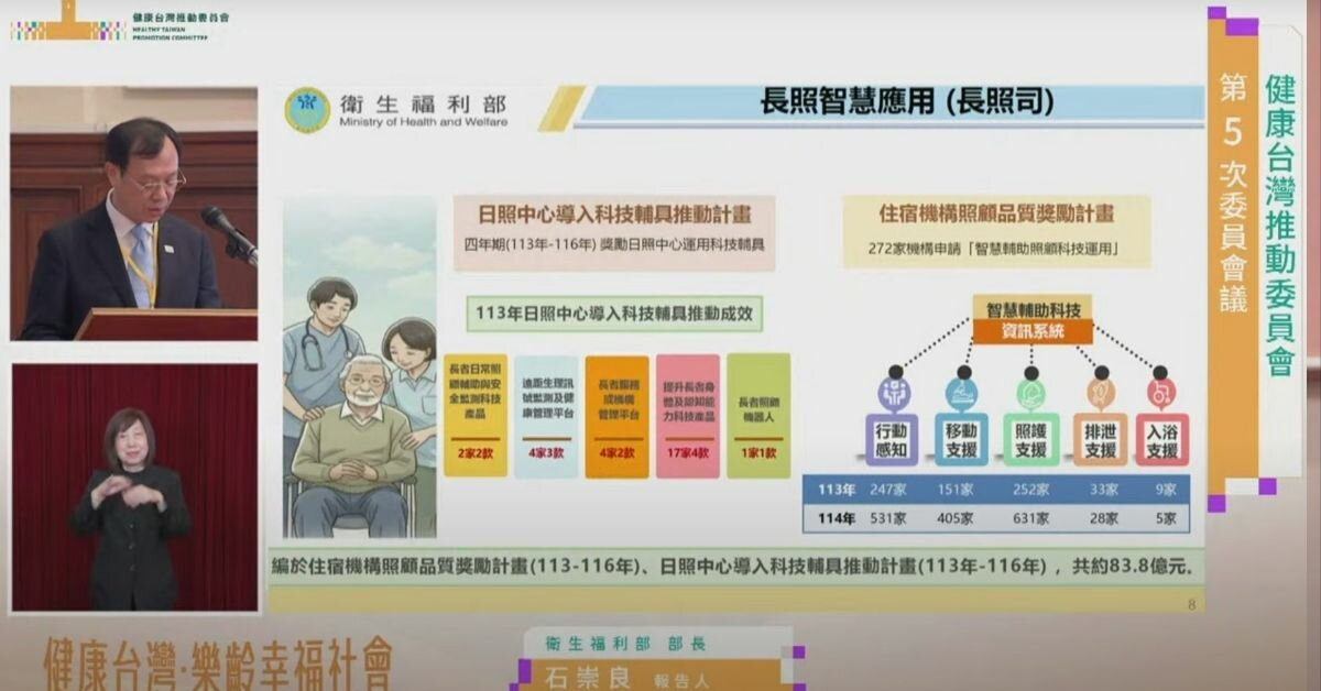 石崇良表示,長照方面,包含在日照中心導入科技輔具推動計畫,提升長者安全、落實個別化照護、減輕照服員工作負荷、優化健康監測與行政效率;住宿機構辦理照顧品質獎勵計畫,包含行政感知、移動支援、照護支援、排泄支援、入浴支援等。相關預算編列共約83.8億元。