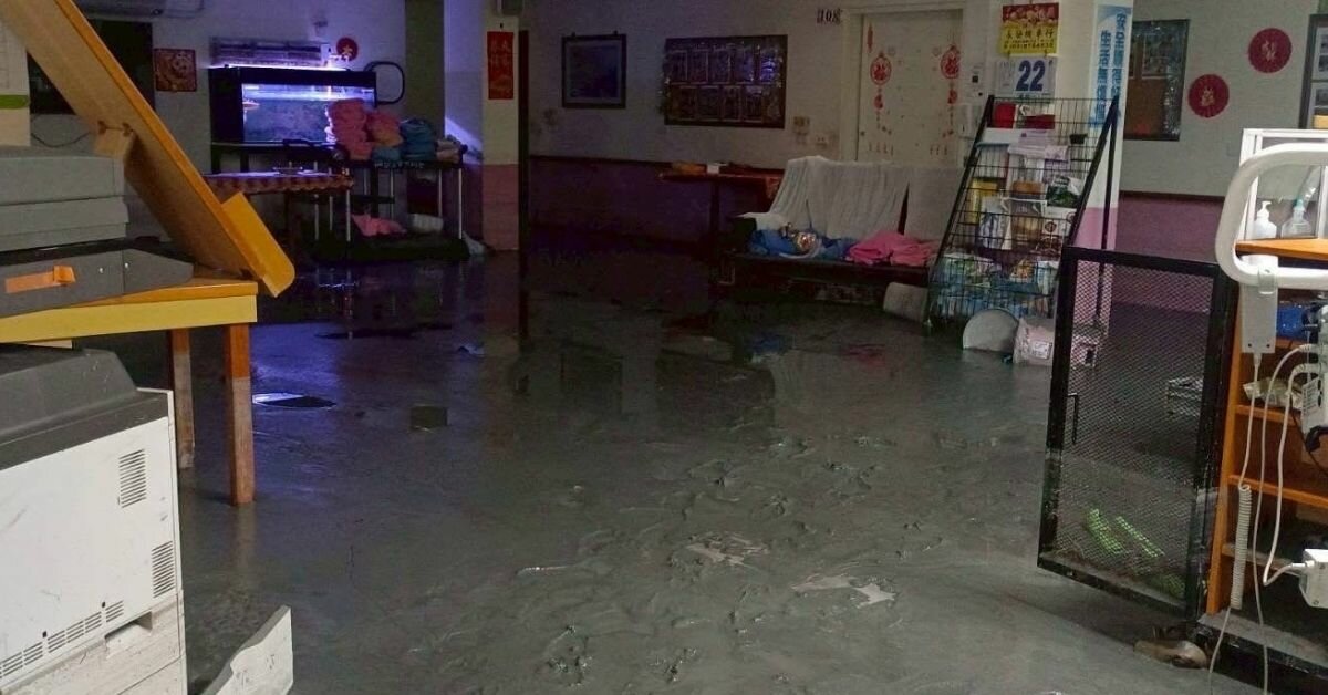滾滾泥流湧入光復長照中心,醫療器材全毀。(照片來源/花蓮縣長期照護發展協會提供)