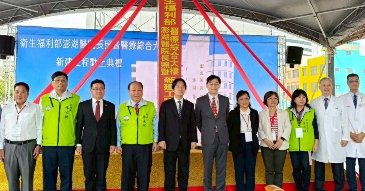 澎湖高齡人口突破20%,行政院耗資15億7850萬元推動「澎湖醫院長照暨醫療綜合大樓新建工程」今天舉行動土典禮,除設置200床住宿型長照床位並整合門診,提供以生活照顧為主、醫療照護為輔之照護模式,預計2029年12月竣工。賴清德總統跨海主持並強調,此案展現政府推動「在地醫療、在地安養」政策的決心。