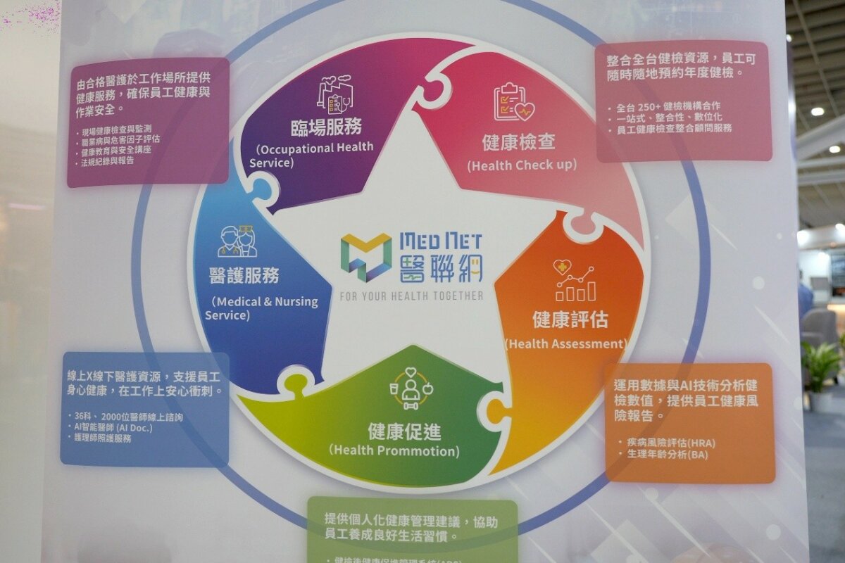 醫聯網:健康管理資源共享平台。核心功能在促進健康服務供需多邊之互動與媒合,提供包括健康檢查、健康評估、健康促進、遠距醫療等服務。目前已匯集全台250家健檢醫療院所,提供企業及團體「一站式、整合性及數位化」的服務。致力於開發各種職場健康管理解決方案,滿足客戶員工健康檢查及健康管理等需求。