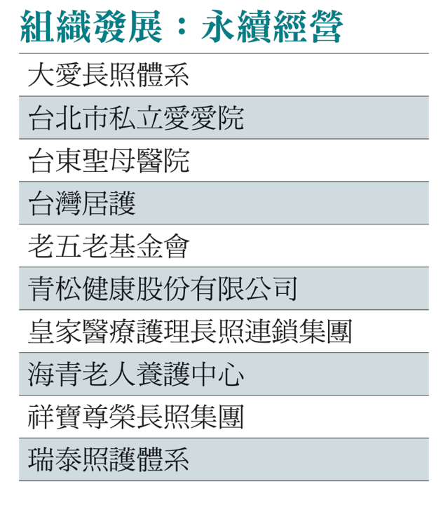 「卓越、創新、永續」三大核心精神中,卓越,意味集合各地具特色的優質機構,樹立照顧服務的標竿並強化專業認同;創新,代表從跨領域到科技應用,業界的創新服務與做法;永續,則強調照顧文化與經營管理的長遠發展,包括人才培育、組織發展與經營模式升級。三大理念貫穿每一則報導。