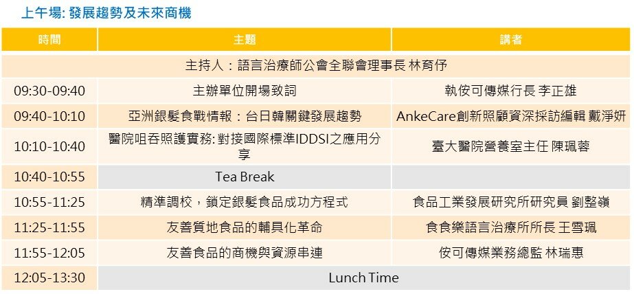 參加對象 │ 食品廠商、零售與藥局醫材通路、長照服務業、醫療院所、餐飲業者以及有意投入銀髮膳食相關業者 ,歡迎踴躍報名參加